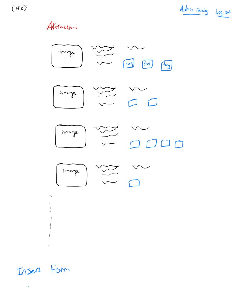 After that I began designing my site by sketching out preliminary wireframes. Sketches do not need to be complex (I am a terrible artist). They just need to visual your thinking so you can see what your site will hopefully look life. Here is my sketch for the Admin View page: